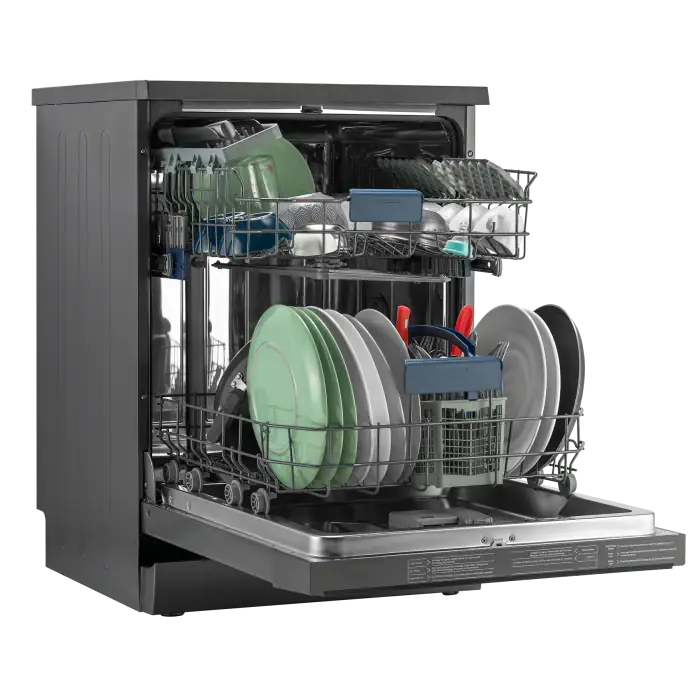Unique Spray Action : Two large 360˚ spray arms and a wide angle shower spray water over every corner of the utensils.