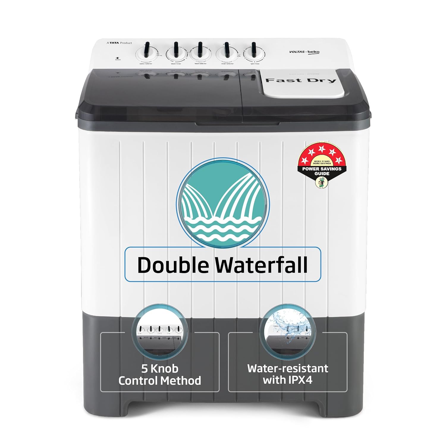 Voltas Beko by A Tata Product 10 kg Semi Automatic Top Load Washing Machine Black, White