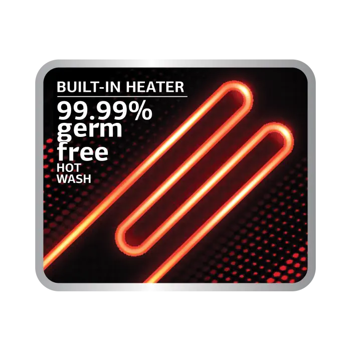 State-of-the-art heater technology tested to last at least 10 years. Scale proof, rust proof and even saves you energy while giving you 99.99% germ free washing!